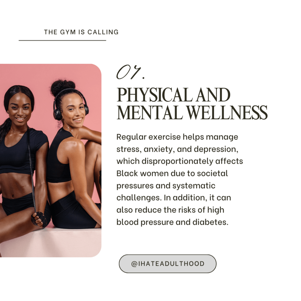 The gym provides discipline like no other because it requires you to show up for yourself. Often, we are working towards a goal so much that we forget to take care of ourselves along the journey. While often challenging, the gym provides a space for accountability, self-care, and community, which are three things all Black women need in their lives.
